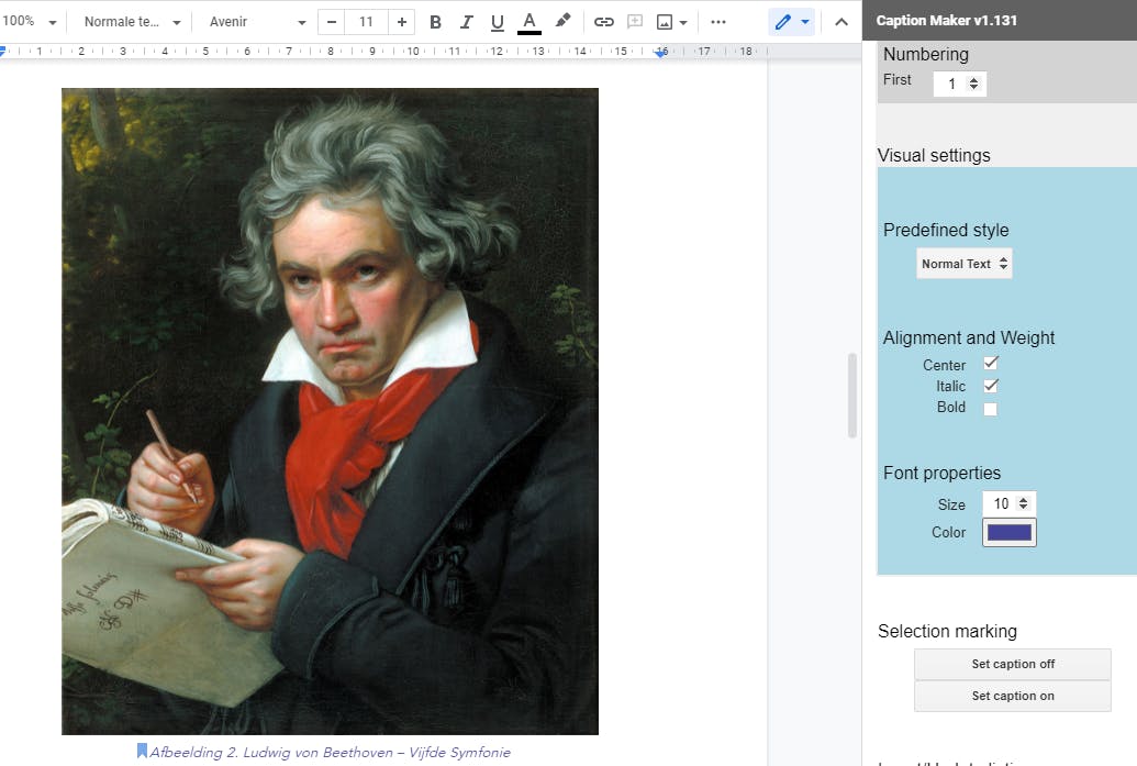 De laatste oplossing vinden we het neusje van de zalm voor mensen die een dossier of werkstuk maken met veel afbeeldingen en tabellen. In een lijvig project wil je dat alle grafische elementen op een eenvormige manier bijschriften krijgen. De oplossing die we voorstellen is Caption Maker, een gratis aanvulling voor Google Docs. Add-ons zijn kleine programma’s die de mogelijkheden van Google Docs uitbreiden.