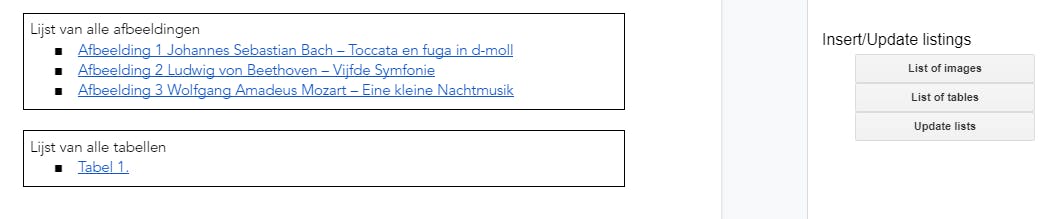 Als je dus in de lijst op de link klikt, schakel je meteen naar de juiste afbeelding. Wanneer je deze lijsten moet vernieuwen omdat er afbeeldingen zijn verwijderd of bijgekomen, klik je in de groep Insert/Update listings op de knop Update listings.
