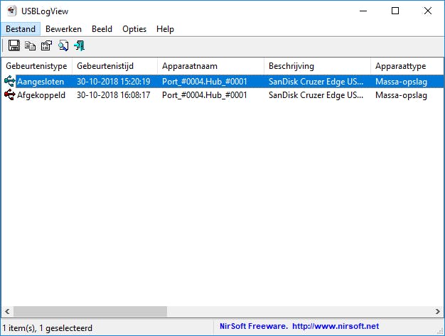Hoeveel films zouden er niet zijn waarin de held of boef gegevens van een computer kopieert naar een usb-stick en daar nét mee klaar is als de eigenaar eraan komt? Te veel om hier op te noemen. De persoon wiens data gestolen zijn, heeft ook nooit iets in de gaten. Ach, als iedereen in het bezit was van het programmaatje USBLogView dan waren al die datadieven binnen de kortste keren in de kraag gevat en waren al die films eerder afgelopen. USBLogView draait op de achtergrond, houdt keurig bij wanneer er een opslagapparaat op een usb-poort wordt aangesloten en houdt daarvan allerlei details bij.