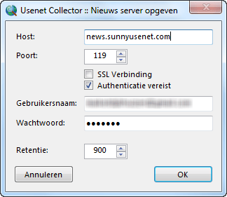 U hebt toegang tot een nieuwsserver nodig om Usenet Collector te gebruiken.