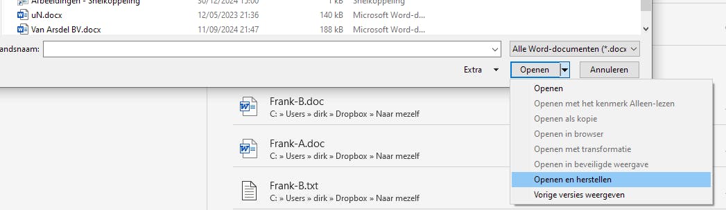 Probeer ook de ingebouwde herstelfunctie van Microsoft Word.