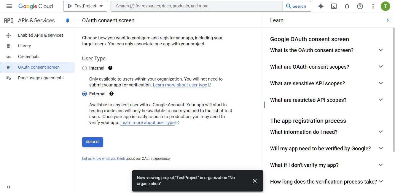 Bij een heuse verificatie moet je kiezen of je je app intern of extern beschikbaar wilt maken.
