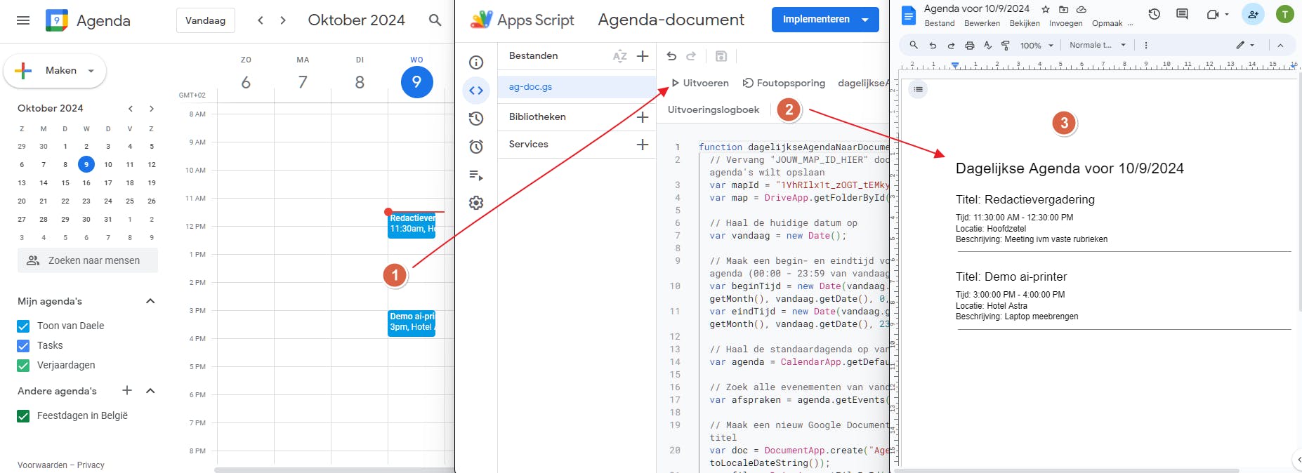 - Maak een dagelijkse samenvatting van je Google Agenda in een Google-document