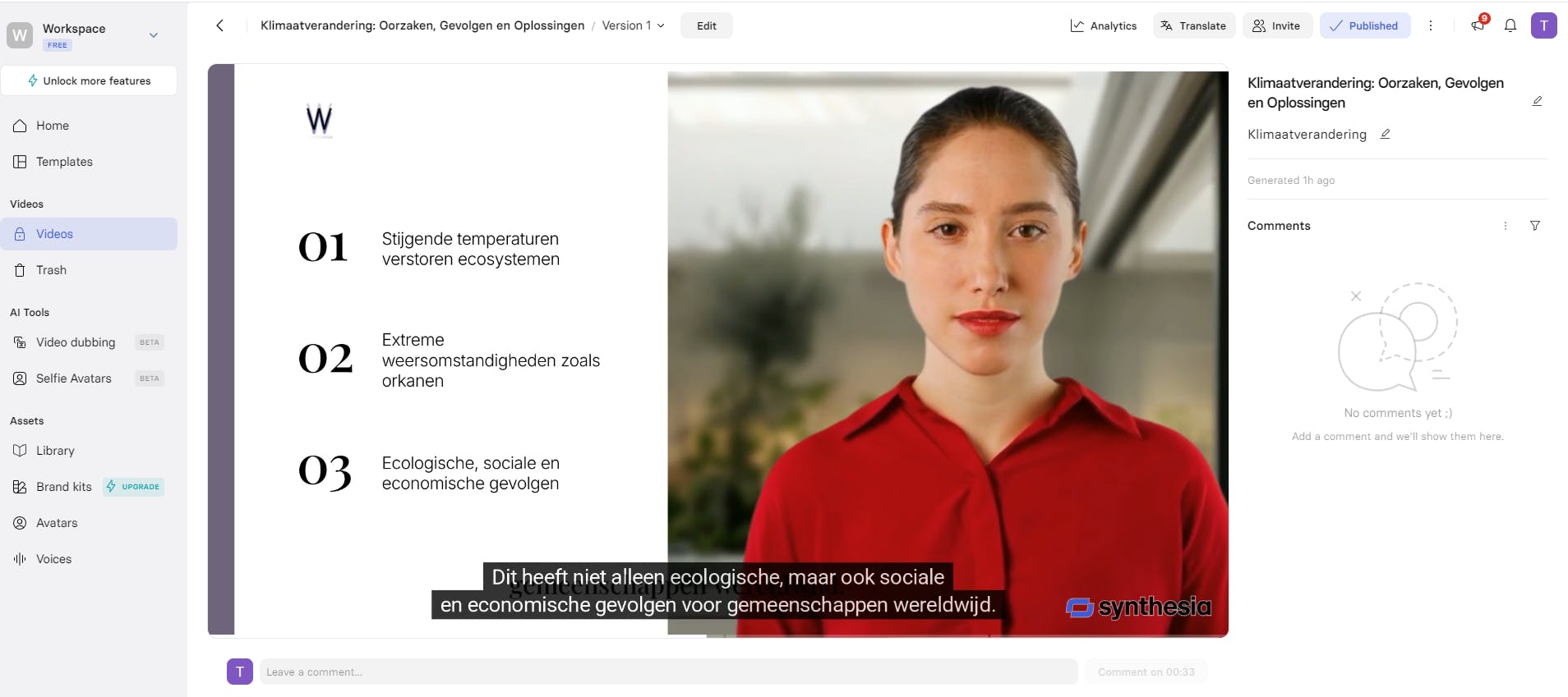 - Laat avatars je tekst inspreken en presenteer in videoformaat via Synthesia
