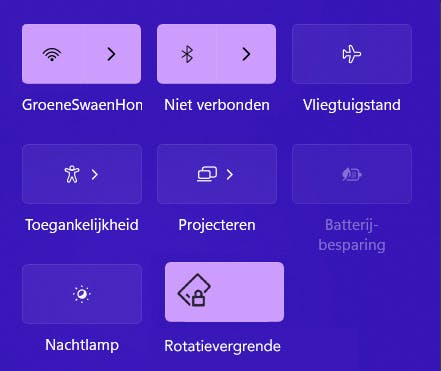 In de snelle instellingen kun je bij bepaalde toestellen de rotatievergrendeling uitschakelen.