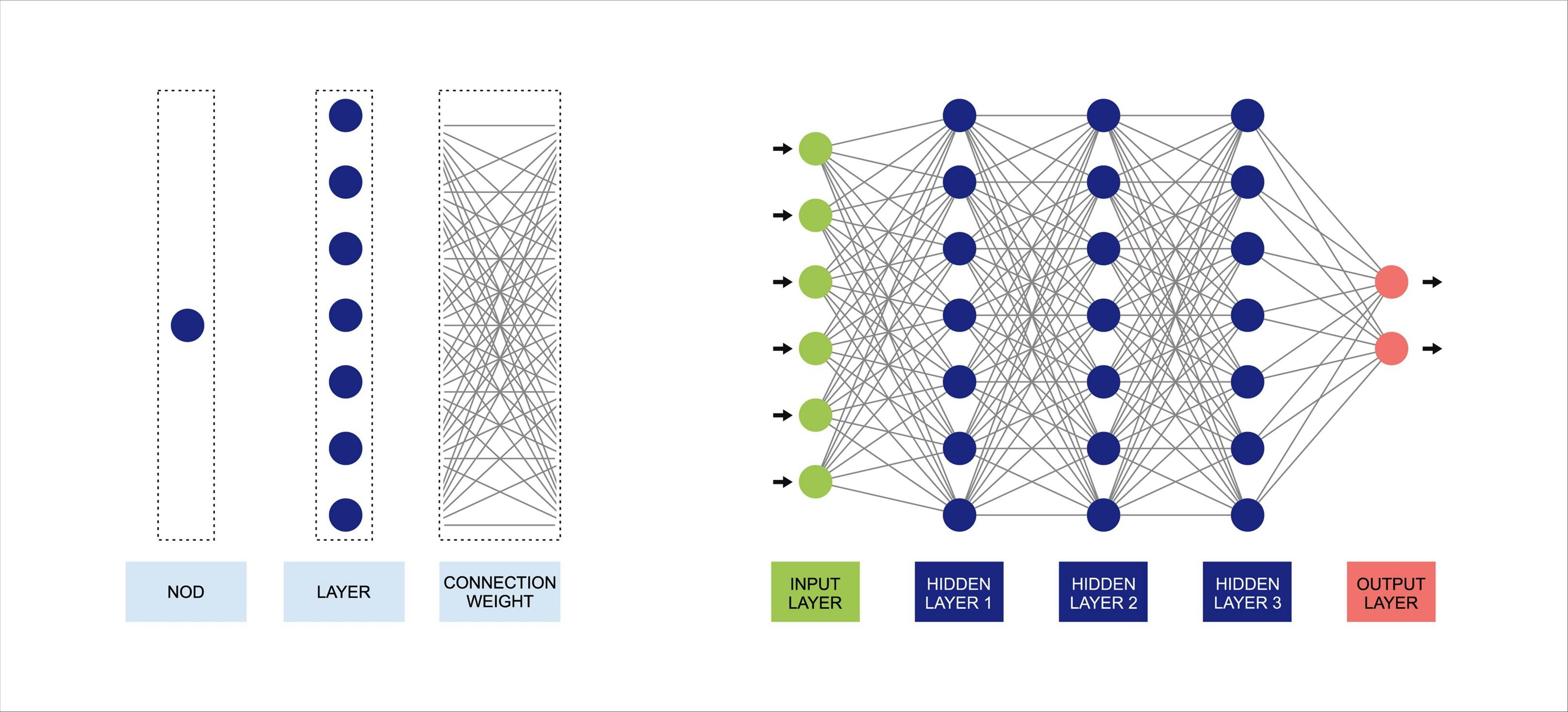 Eenvoudige ML-modellen hebben meestal een of enkele verborgen lagen. Bij een complexere architectuur met meerdere verborgen lagen, die in staat is complexere patronen en relaties te herkennen, spreekt men van deep learning (DL). Deep learning is daarmee een subonderdeel van machine learning, al is het onderscheid niet altijd scherp te maken.