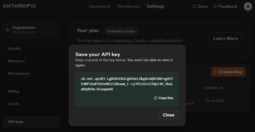 Bij Aider werken we zoals aangegeven met Claude 3.5 Sonnet, een populaire optie onder programmeurs. Voor toegang is een API-sleutel nodig. Ga daarvoor naar de console van Anthropic. Vul je e-mailadres in. Via e-mail ontvang je een beveiligde link waarmee je kunt inloggen. Ga dan naar Settings / API keys en klik op Create Key. Vul een naam in, bijvoorbeeld Aider, en klik op Add. Noteer de API-sleutel, deze is later niet meer zichtbaar!