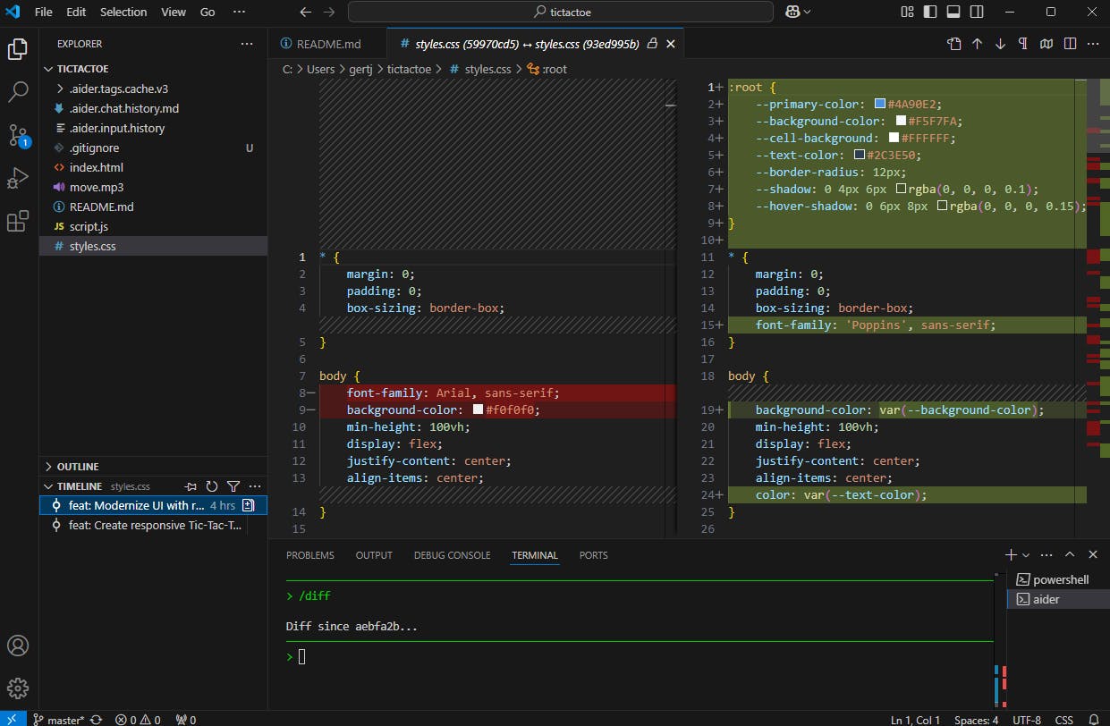 Tot slot vragen we Aider om het programma te verfraaien met een moderner uiterlijk. Dat levert een flinke metamorfose op. Bekijk hier het resultaat.
