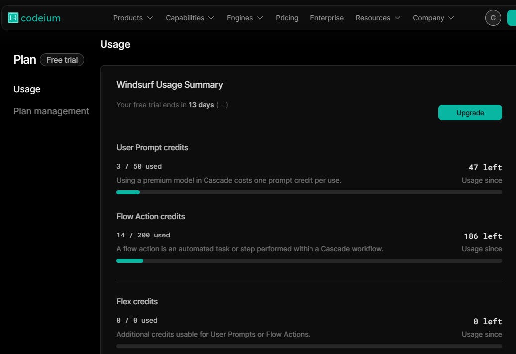 Windsurf werkt met credits voor verschillende taken. Zo worden User Prompt-credits voor elke interactie met de assistent gebruikt en Flow Action-credits voor alle acties die worden uitgevoerd. Als je de limiet bereikt voor het premiummodel, wordt overgeschakeld naar het basismodel. De proefperiode van 14 dagen geeft je ruim voldoende credits om het voorbeeldprogramma uit dit artikel te maken. Sterker nog, je hebt ongeveer vijftien keer meer credits dan nodig, dus je kunt ook grotere en complexere programma’s proberen te maken.