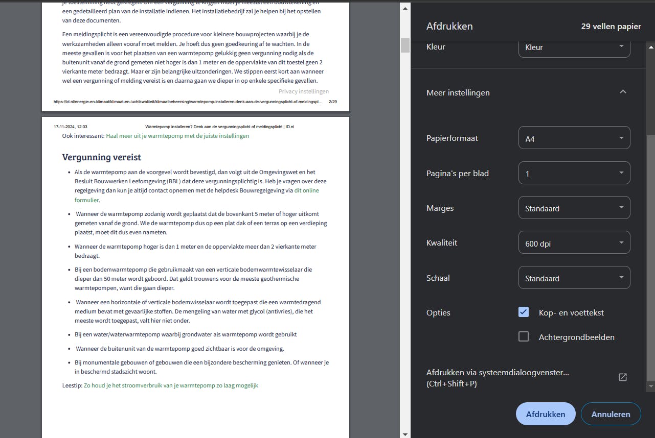 Wanneer je een webpagina afdrukt, staan de advertenties, afbeeldingen, banners en soms zelfs filmpjes in de weg. Probeer in dat geval de Readermodus of Leesmodus. Dit geldt zowel voor een afdruk op papier als een afdruk naar pdf. Deze weergave stript de webpagina van alles wat de inhoud verstoort.