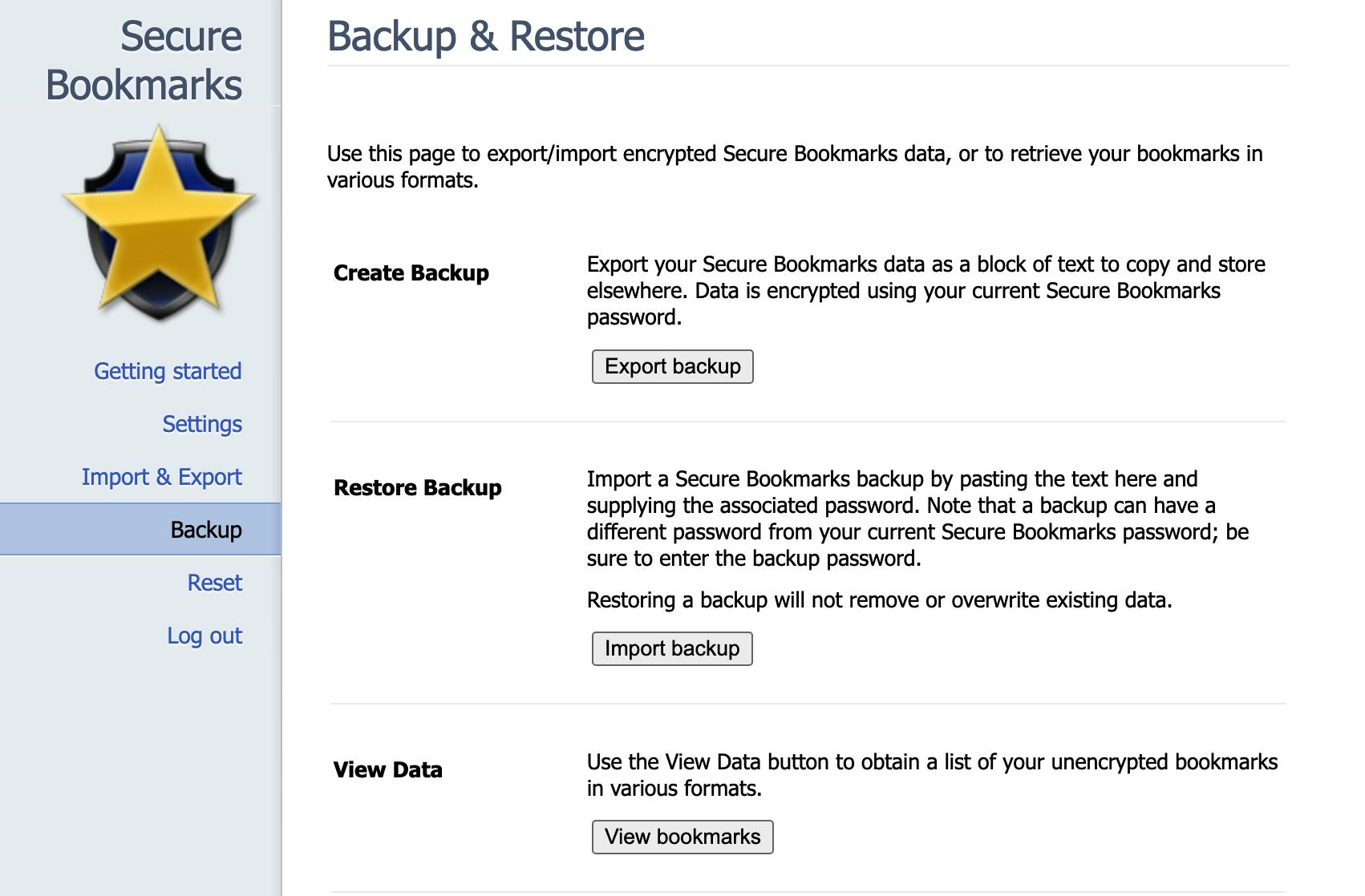 De nieuwe extensie heeft een tandwieltje dat je bij de instellingen brengt, maar ook bij een stel extra functies. Hier kun je bijvoorbeeld gewone bladwijzers in de groep Veilige bladwijzers slepen en andersom. Bovendien kun je de gecodeerde Secure Bookmark-gegevens exporteren als een back-up en uiteraard is het mogelijk om die reservekopie opnieuw te importeren, maar dan moet je wel het bijbehorende wachtwoord kennen van de set die je binnenhaalt.