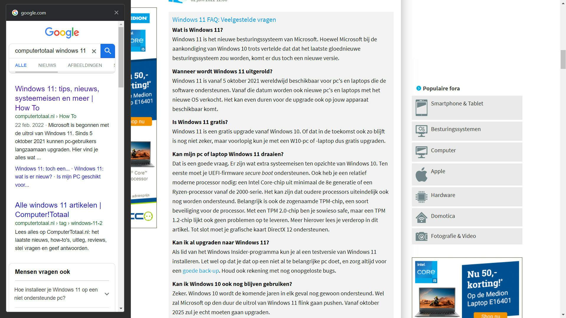 Je hoeft dus niet op de terugknop te klikken of allerlei tabs af te sluiten wanneer je niet kunt vinden wat je zoekt en kunt binnen no-time op een andere website belanden, zonder de zoekpagina uit het oog te verliezen. Uiteindelijk wil Google dat deze functie ook werkt met andere zoekmachines, maar dat is nu nog niet het geval.