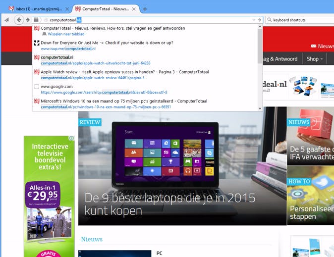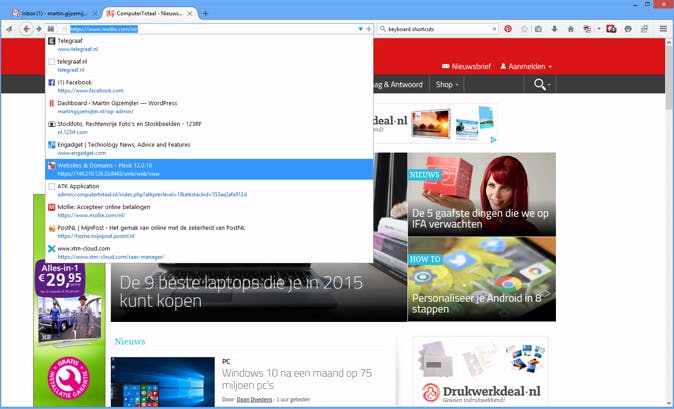 Het is natuurlijk een kleine moeite om de extensie te typen achter de website die je wilt bezoeken. Desalniettemin is er een manier om dat nóg sneller te doen. Stel dat je de site van Computer!Totaal wilt bezoeken. Je kunt natuurlijk de hele url intypen, maar je kunt ook op Ctrl + Enter drukken wanneer je computertotaal hebt ingetypt. Firefox zal dan automatisch .nl erachter zetten. Lastiger wordt dit natuurlijk als een site meerdere extensies heeft, maar in dat geval kiest Firefox voor .com.