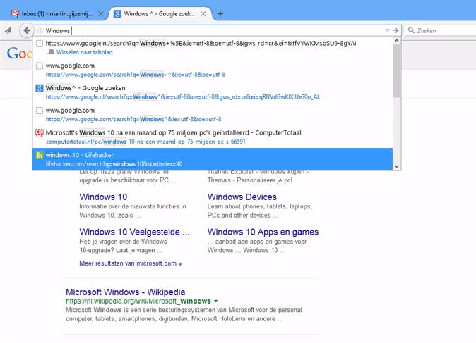 Er zal dan alleen binnen de geschiedenis gezocht worden, andere resultaten worden genegeerd. Ben je op zoek naar een pagina die zich bevindt tussen jouw honderden bladwijzers? Typ dan het teken * (sterretje) direct na je zoekopdracht en alleen de resultaten uit je bladwijzers worden getoond.