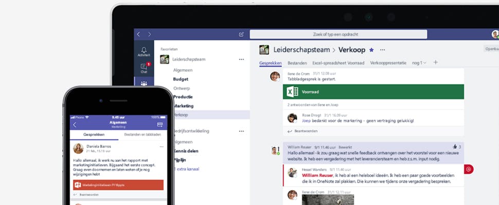Teams bestaat net zoals Slack uit chatkanalen rond verschillende onderwerpen, waar collega's met elkaar kunnen brainstormen en bestanden kunnen uitwisselen. Tot voort kort was Teams alleen te gebruiken voor wie een betaald Office 365-abonnement afsloot, maar nu kan iedereen met de gratis versie aan de slag.