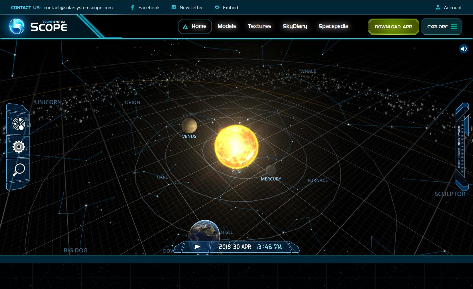 Solar System Scope is een applicatie die weliswaar niet buiten de grenzen van ons zonnestelsel kijkt, maar dat maakt de app niet minder uitgebreid. Met Solar System Scope kun je ongeveer hetzelfde als bij Celestia Space of Space Engine, maar dan vanuit je browser. Er is ook een desktop-applicatie beschikbaar, maar die is dus niet per se nodig.
