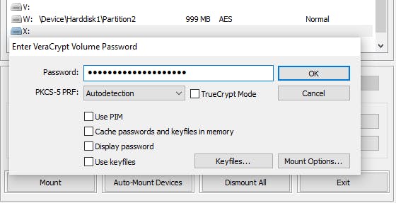 Na afloop beland je opnieuw in het hoofdvenster van VeraCrypt. Selecteer een vrije stationsletter in de kolom Drive, druk op de knop Auto-Mount Devices en vul het juiste wachtwoord in. VeraCrypt koppelt de gekozen stationsletter aan het versleutelde station en is die vanuit Verkenner bereikbaar.