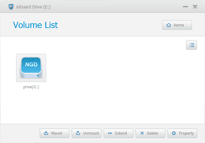 Open de beveiligde schijfletter van ioGuard Drive in de Verkenner en kopieer eventueel een paar testbestanden naar je digitale kluis. Start ioGuard Drive opnieuw en klik op Volume list. Je ziet de naam van je kluis. Als hier een schijfletter achter staat, weet je dat de kluis geopend is. Sluit de kluis voordat je de usb-stick verwijdert of Windows afsluit. Klik hiervoor op de naam van je kluis en kies Unmount (ontkoppelen). De kluis opnieuw openen gaat op dezelfde manier, maar dan gebruik je de knop Mount (koppelen). Na het opgeven van je wachtwoord kun je weer bij je bestanden.