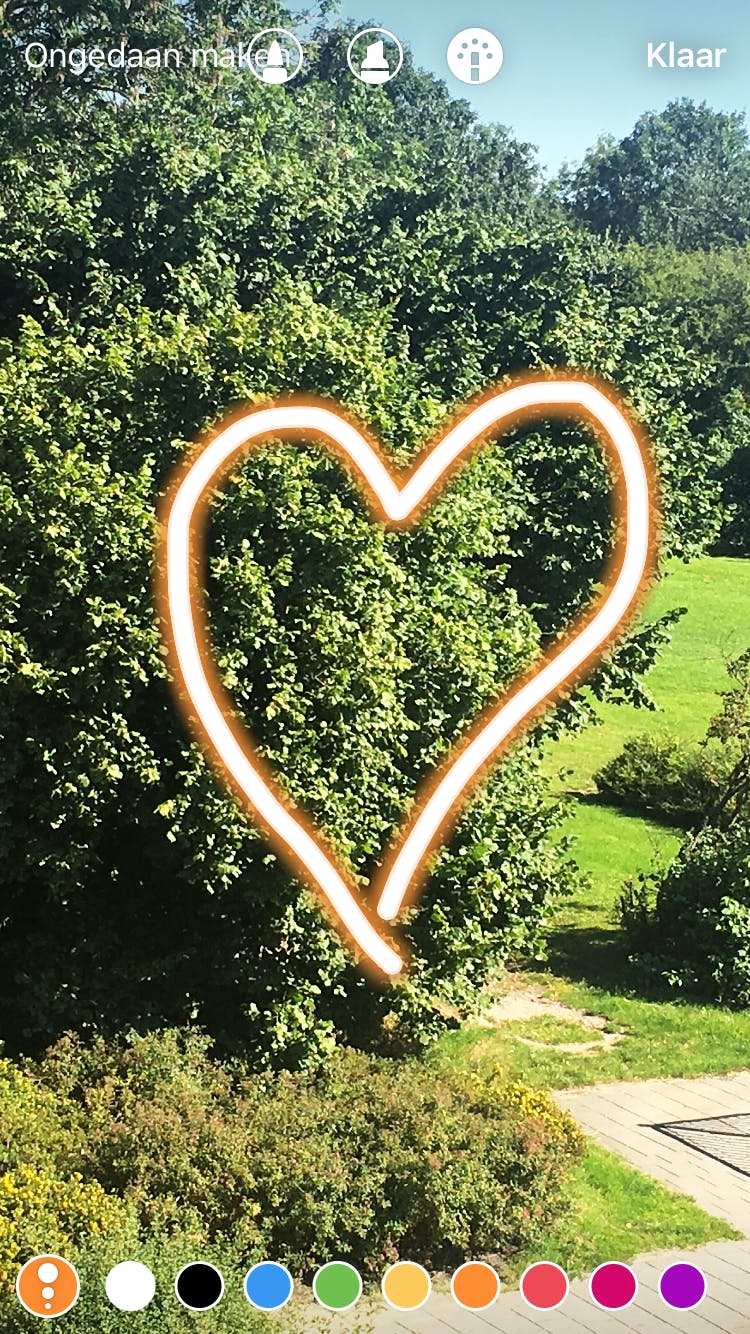 Het maken van een verhaal (de functie heet Stories, maar in het menu is het vertaald als Verhaal) is heel eenvoudig. Start Instagram, en veeg naar rechts. Je kunt nu een foto of video maken om aan je verhaal toe te voegen (zodra je de foto of video hebt gemaakt, kun je drukken op het pictogram met het vinkje om hem toe te voegen aan je verhaal). Wil je een al bestaande foto of video gebruiken, sleep dan naar beneden om een foto of video te selecteren die je in de afgelopen 24 uur hebt genomen. Wanneer je een foto hebt geselecteerd, dan kun je naar links en rechts vegen om filters toe te passen. Bovenin kun je op het kwastje drukken om te tekenen of op het tekstpictogram om tekst toe te voegen. Druk op het vinkje om de foto/video toe te voegen aan je verhaal. Doe dit voor alle foto’s die je wilt toevoegen.