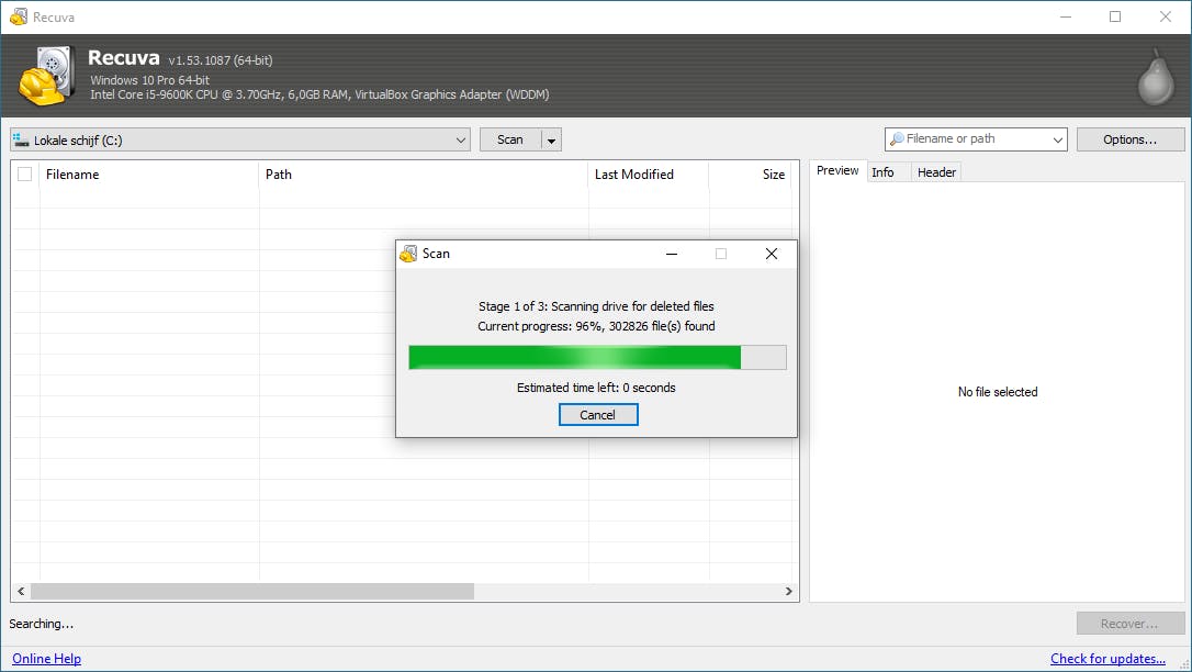 Verwijderde bestanden herstellen met Recuva