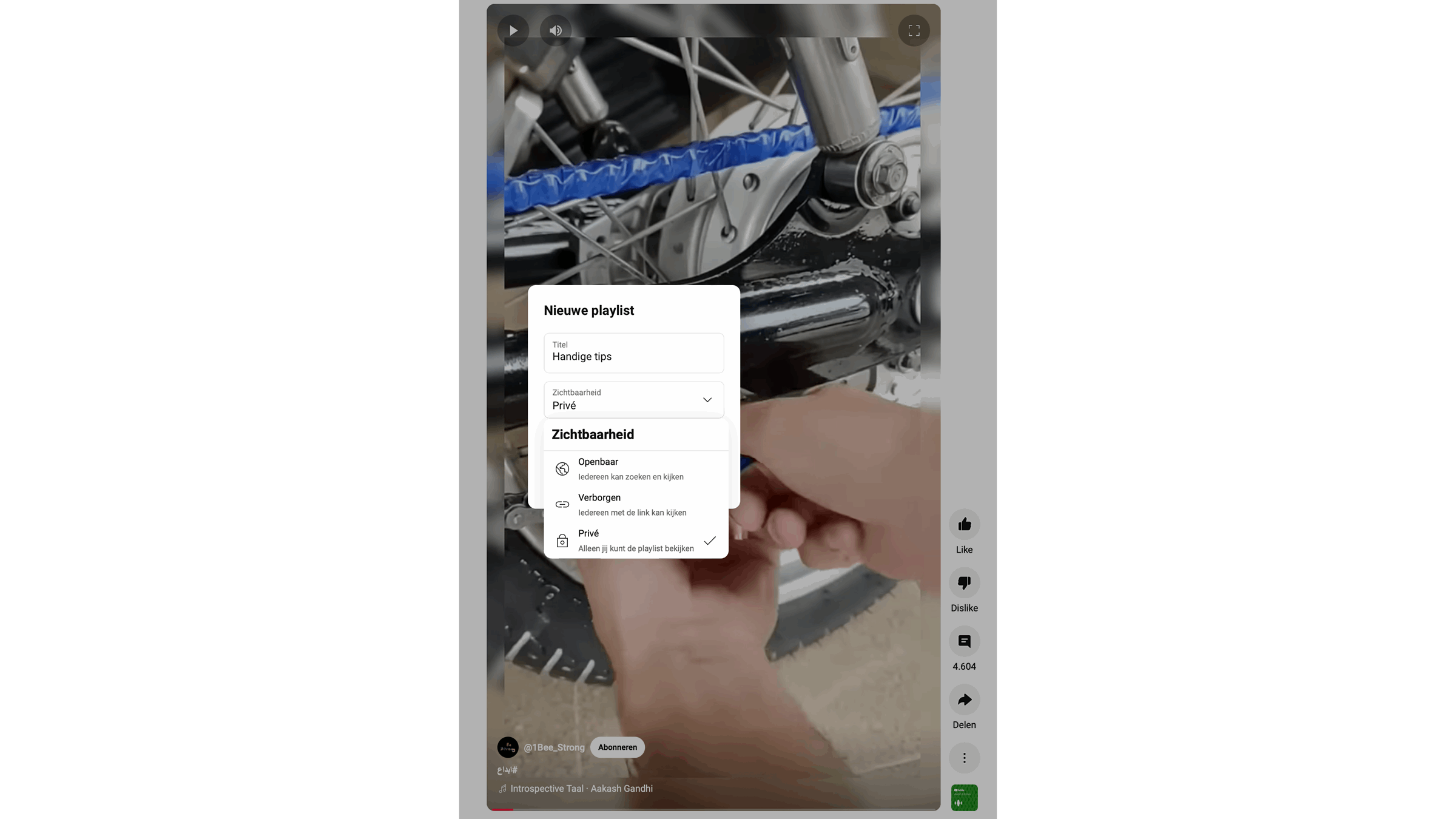 Vervolgens bepaal je het privacyniveau. Wil je dat deze afspeellijst privé is zodat jij die alleen kunt bekijken? Of wil je een verborgen playlist maken die men uitsluitend kan bekijken via een link die jij hebt gestuurd? De laatste optie is dat je de playlist openbaar maakt zodat iedereen de lijst kan vinden en de inhoud kan bekijken. Klik op de knop Creëren en klaar. Naar gelang het gekozen privacyniveau zal er naast de playlist een ander pictogram verschijnen: een stukje landkaart voor Openbaar, een kettinkje voor Verborgen en een slotje voor Privé.