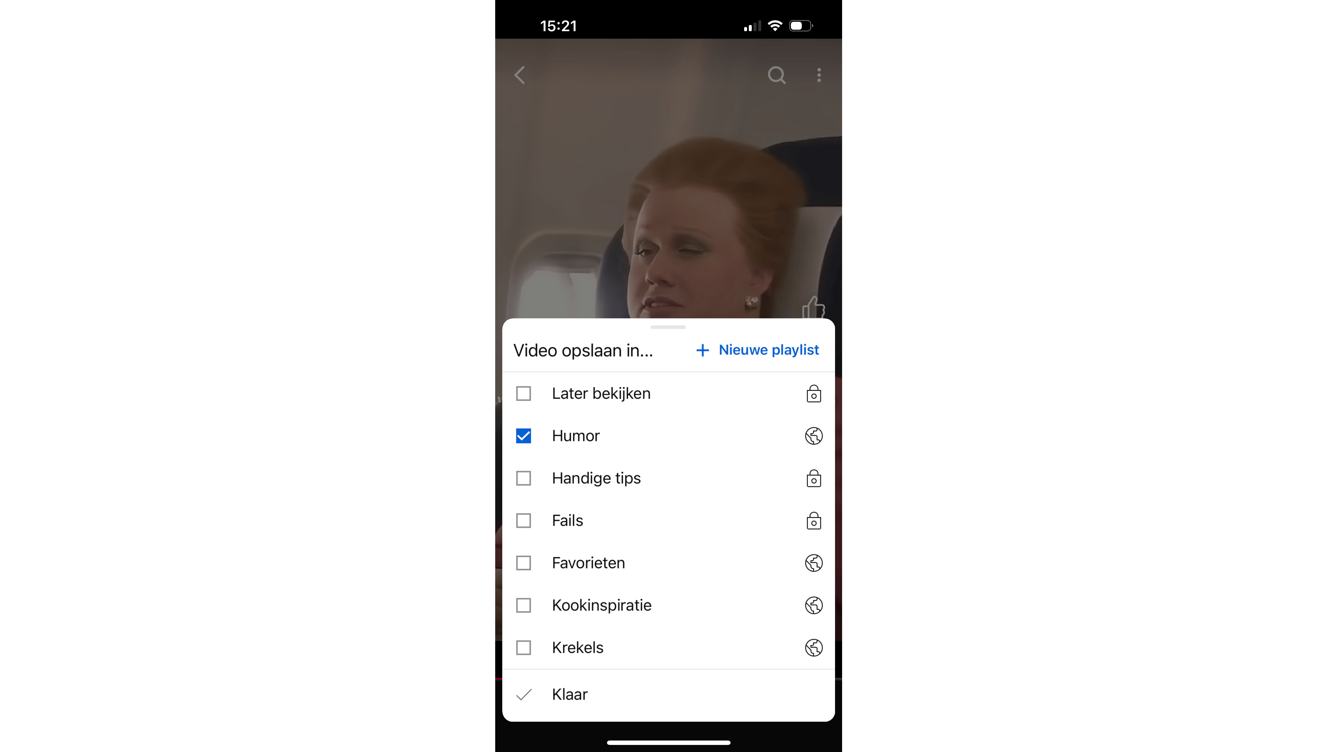 Ook op een mobiel apparaat kun je een Short in verschillende playlists opslaan.