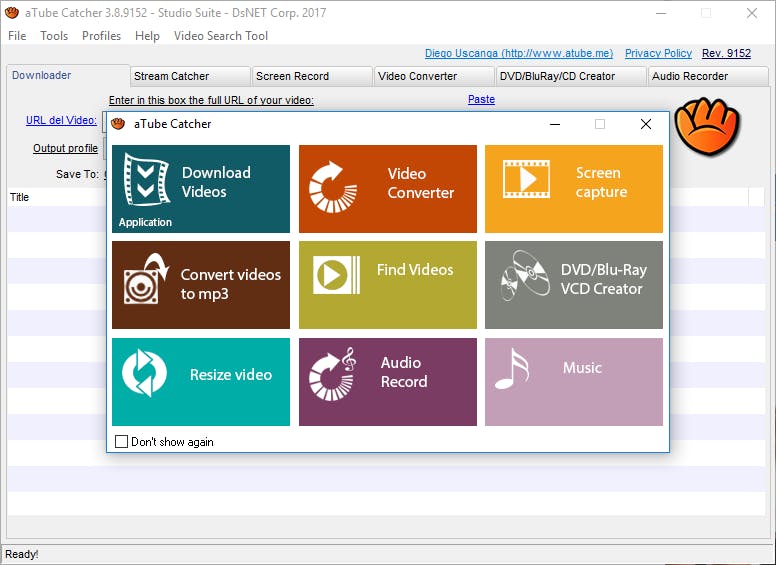 Een filmpje downloaden en dat converteren naar het gewenste formaat gaat razendsnel met aTube Catcher. En dat werkt niet alleen bij YouTube maar bij praktisch alle sites die video’s delen. Download aTube Catcher van www.atube.me. Nadat de installatie is afgerond, beland je op het dashboard. Aan de grote knoppen kun je al zien dat deze software meer kan dan alleen filmpjes downloaden en converteren. Ook bijvoorbeeld opgeslagen filmpjes converteren, video omzetten naar mp3, schermfilmpjes maken, video’s groter of kleiner maken en audio opnemen is mogelijk.