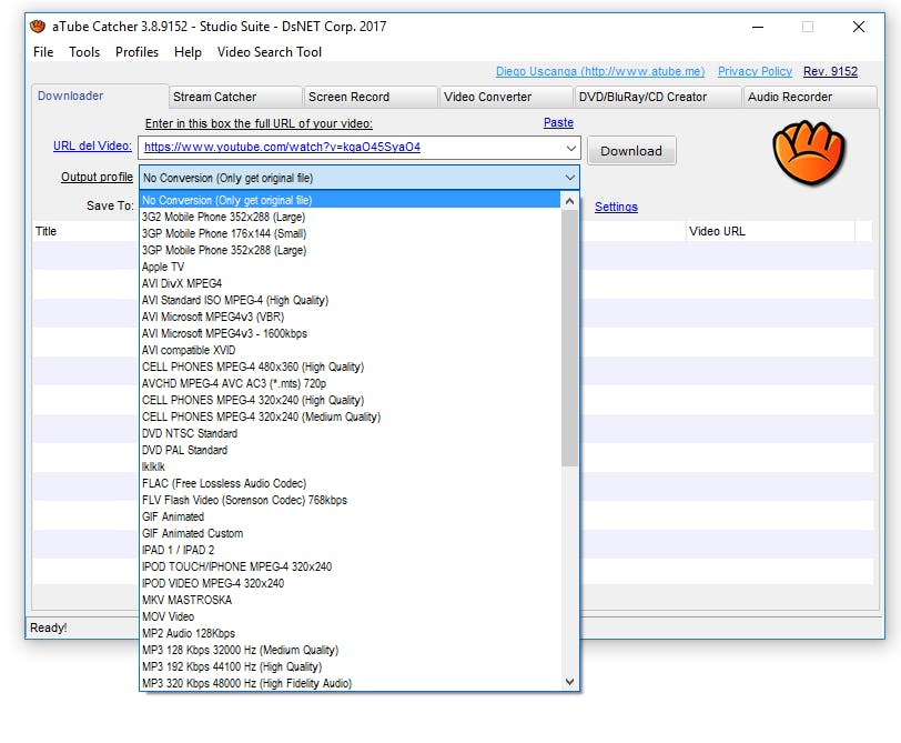 Het downloaden van een filmpje van YouTube werkt eenvoudig. Klik op YouTube met de rechtermuisknop op het filmpje en kies Video-url kopiëren. Open aTube Catcher en selecteer Video downloaden. Plak het gekopieerde internetadres van het filmpje in het vak Url en selecteer eventueel een aangepast output-profiel.