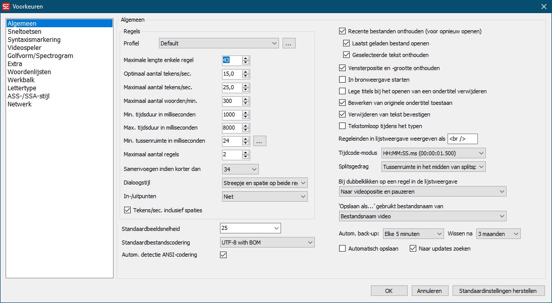 In de rubriek Algemeen tref je nog een andere limietwaarde aan, die van Maximale lengte enkele regel. Deze staat standaard ingesteld op 43 tekens. Ook die kun je eventueel wat hoger instellen, zodat de waarde bij Regellengten niet langer rood kleurt zodra je die waarde overschrijdt.