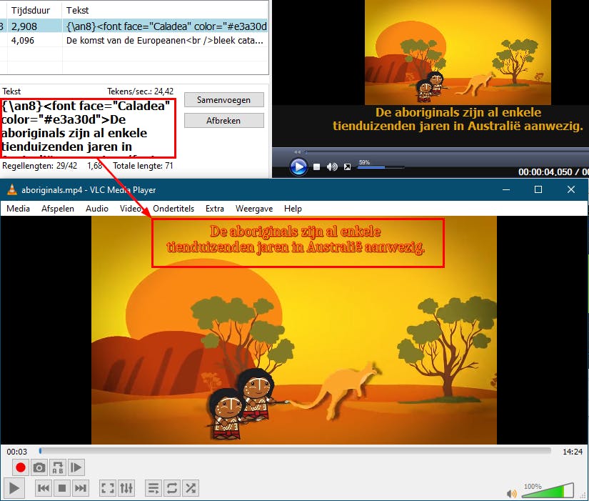 Om een ondertitel aan te passen, volstaat het op de titel in de lijstweergave (bovenaan) te klikken. Ook kun je met Subtitle Edit de ondertitels opmaken. Klik in de lijstweergave met rechts op een ondertitel. In het contextmenu tref je allerlei opmaakopties aan, waaronder Vet, Cursief, Onderstrepen, maar ook Kleur, Lettertype en Uitlijnen. Houd er rekening mee dat niet alle videospelers met deze opmaakcodes overweg kunnen. Voor VLC is dat alvast geen probleem.