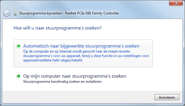 Windows kan ook zelf naar drivers en driverupdates zoeken.