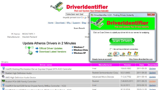 Slaag je er niet in om een geschikte of up-to-date driver te vinden, dan kun je die controle en zoektocht eventueel ook aan een externe tool overlaten. Een gratis programma dat je hierbij kunt gebruiken is Driveridentifier.