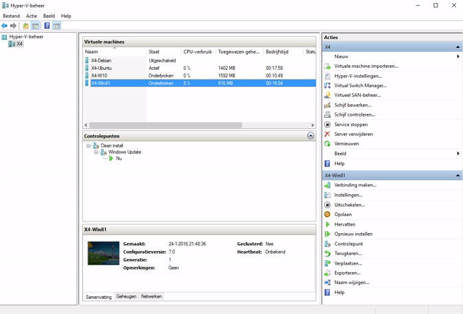 Met Hyper-V-beheer maak en gebruik je de virtuele machines.