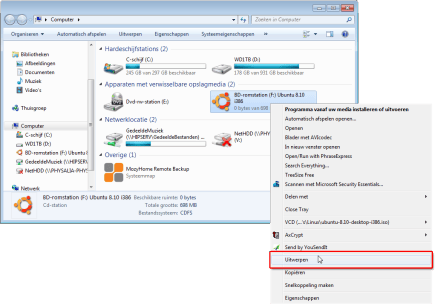 De virtuele dvd-speler met ‘daarin’ de inhoud van het iso-bestand vindt u terug in Verkenner, bijvoorbeeld via Start, (Deze) Computer. U kunt de virtuele schijf gebruiken zoals u een normale cd of dvd gebruikt. Als het iso-bestand een dvd-film bevat, kunt u hem afspelen met uw dvd-afspeelsoftware. Wanneer u een installatie-cd hebt geladen, kunt u de software nu installeren. De koppeling met het iso-bestand is na gebruik eenvoudig op te heffen. Klik met rechts op de virtuele dvd-speler en kies Uitwerpen. Bij een fysieke dvd-speler gaat in dit geval de lade open, zodat u het schijfje kunt uitnemen en eventueel een nieuwe plaatsen. Bij onze virtuele speler wordt alleen de koppeling met het iso-bestand verbroken. U kunt eenvoudig een nieuw iso-bestand koppelen of de virtuele speler laten voor wat hij is, tot u in de toekomst zijn diensten nog eens nodig hebt.