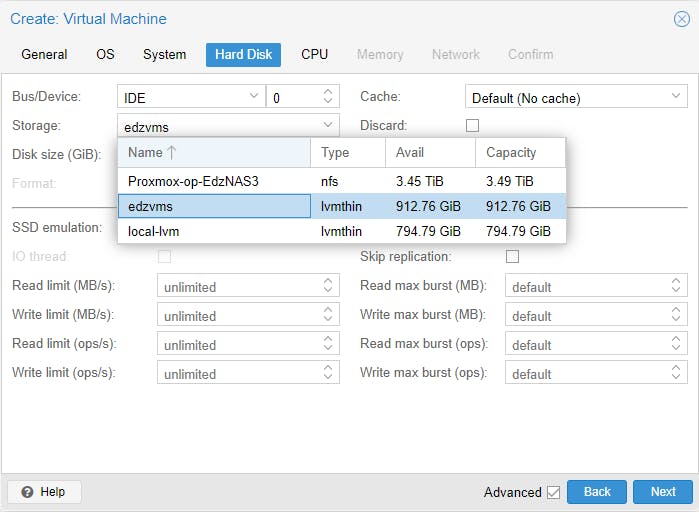 Bij Hard Disk bepaal je de grootte van de harde schijf en kies je onder Storage de plaats waar je de vm wilt opslaan. Is er maar één schijf aanwezig, dan is deze laatste optie niet beschikbaar.