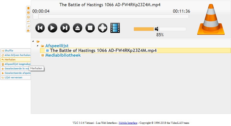 Over naar je browser, (voorlopig) op dezelfde pc. Hier tik je localhost:8080 in de adresbalk in – mocht je firewall protesteren, geef dan aan dat het om bonafide verkeer gaat. Er wordt om het wachtwoord gevraagd (de gebruikersnaam laat je oningevuld) en meteen erna verschijnt een afstandsbediening voor VLC, met handige knopjes aan de linkerzijde.