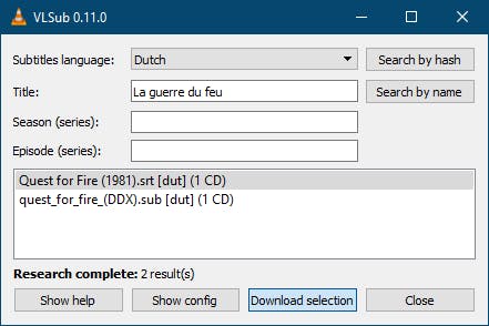 Ben je nog op zoek naar het bijbehorende ondertitelbestand? Ook dat kan vanuit VLC zelf via de inmiddels ingebouwde plug-in VLSub. Open het menu Weergave en kies VLSub. Stel de gewenste taal in (zoals Dutch) en vul de titel van de film, serie of het specifieke seizoen in. Druk op Search by name, selecteer het gewenste ondertitelbestand, klik op Download selection en op de bijbehorende link, waarna je browser het bestand zal downloaden.