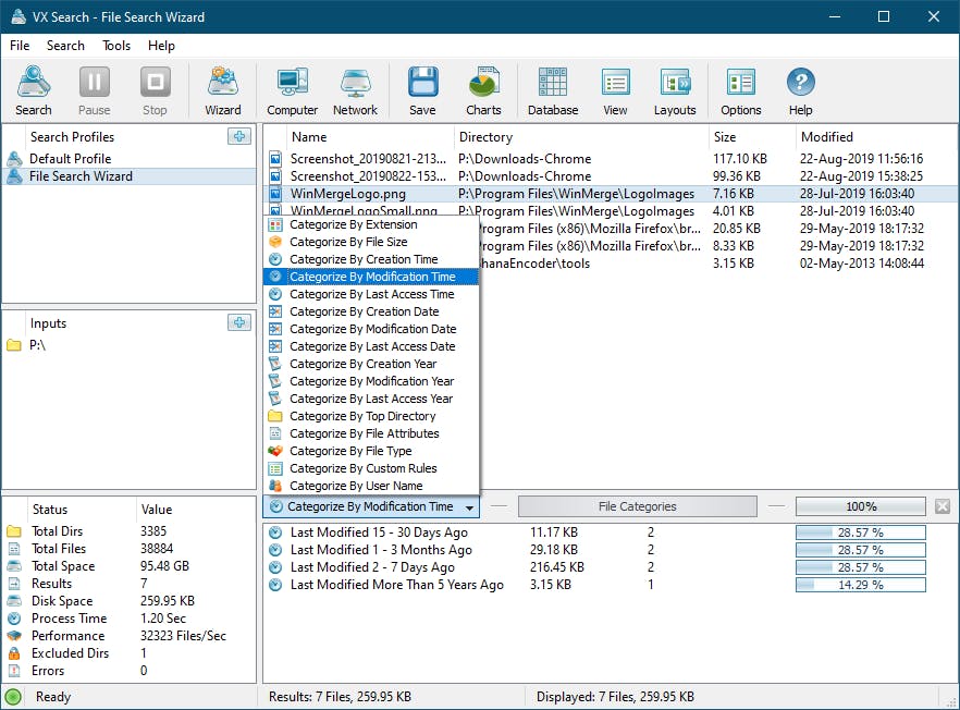 De resultaten verschijnen in een afzonderlijk venster en met een dubbelklik roep je allerlei detailinformatie over zo’n bestand op. Vanuit het contextmenu kun je allerlei operaties op je selectie uitvoeren, waaronder verwijderen, kopiëren en comprimeren. Deze resultatenlijst laat zich bovendien makkelijk op allerlei manieren categoriseren. Zo kun je die bijvoorbeeld opdelen volgens bestandsgrootte, of tijdstip van maken of aanpassen. Al deze gefilterde informatie kun je tevens in allerlei (al dan niet grafische) rapporten gieten, in diverse formaten.