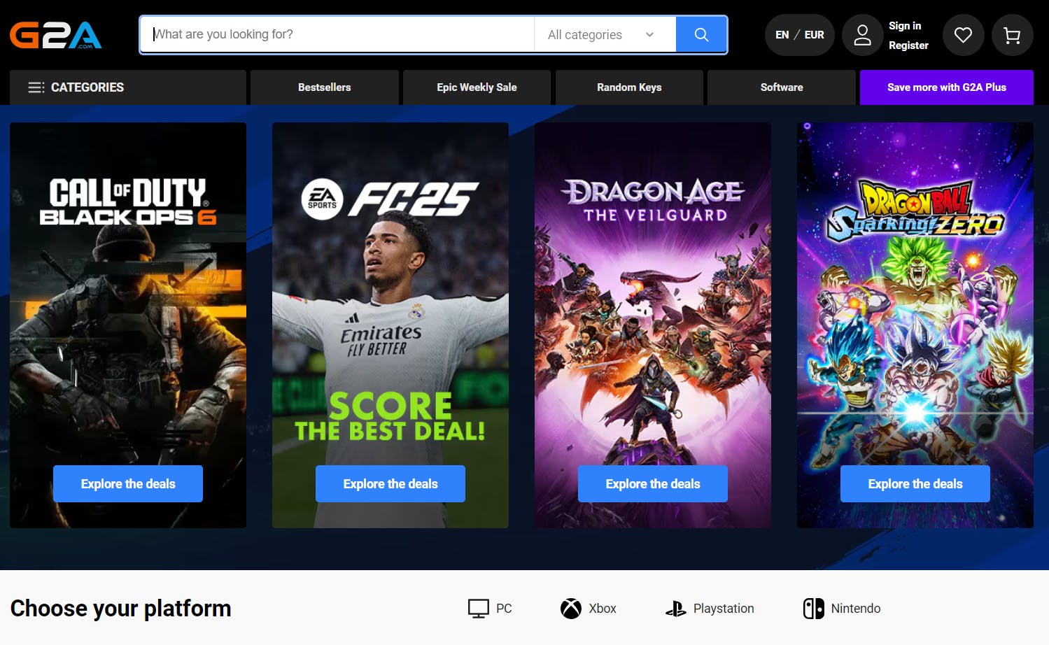 - 🎮 Productcodeaanbieders, zoals de ongeautoriseerde marktplaatsen G2A en CDKeys en verkoopsites als Green Man Gaming en Humble Bundle