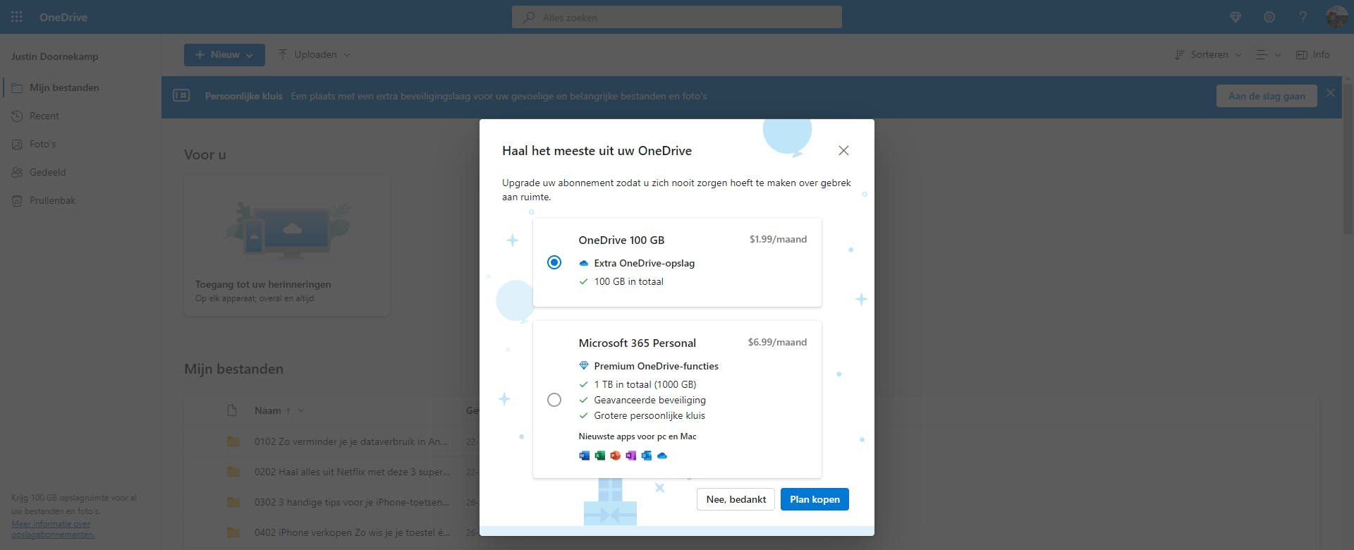 100 GB: € 19,99 per jaar (of € 1,99 per maand)