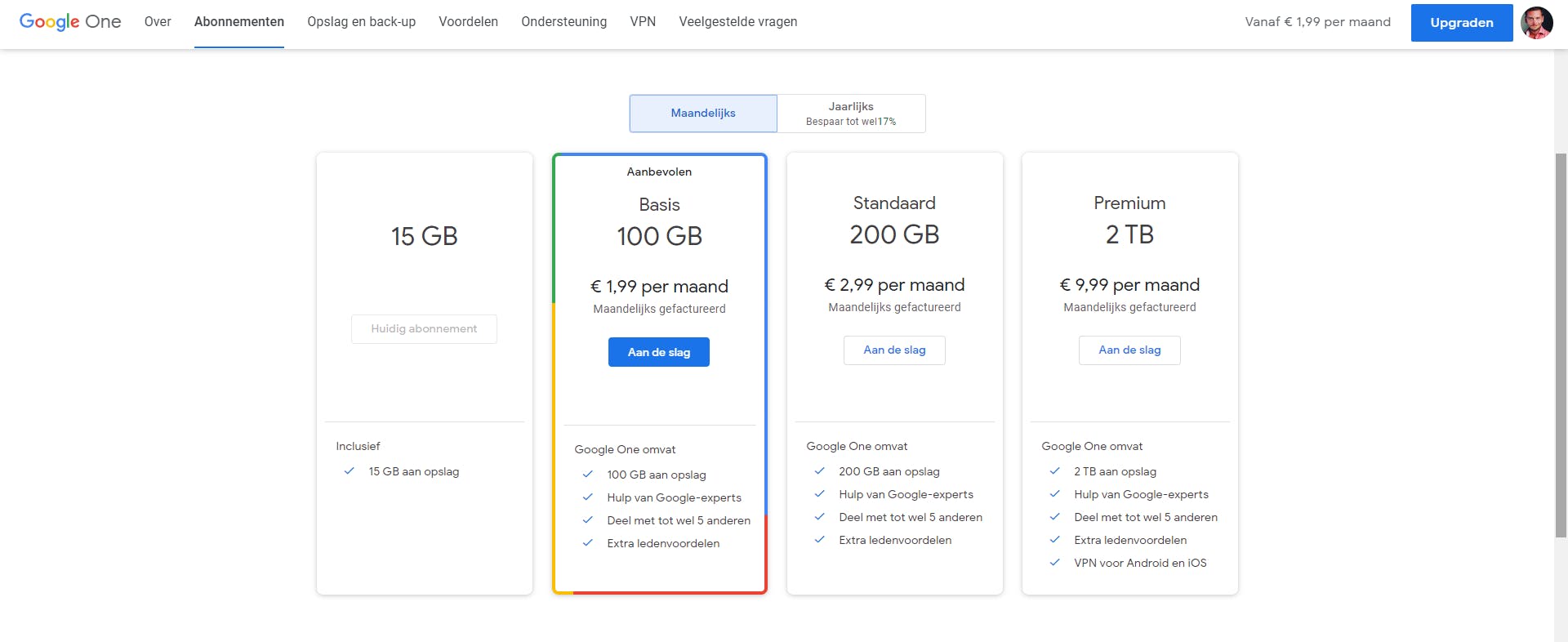 200 GB: € 29,99 per jaar (of € 2,99 per maand)