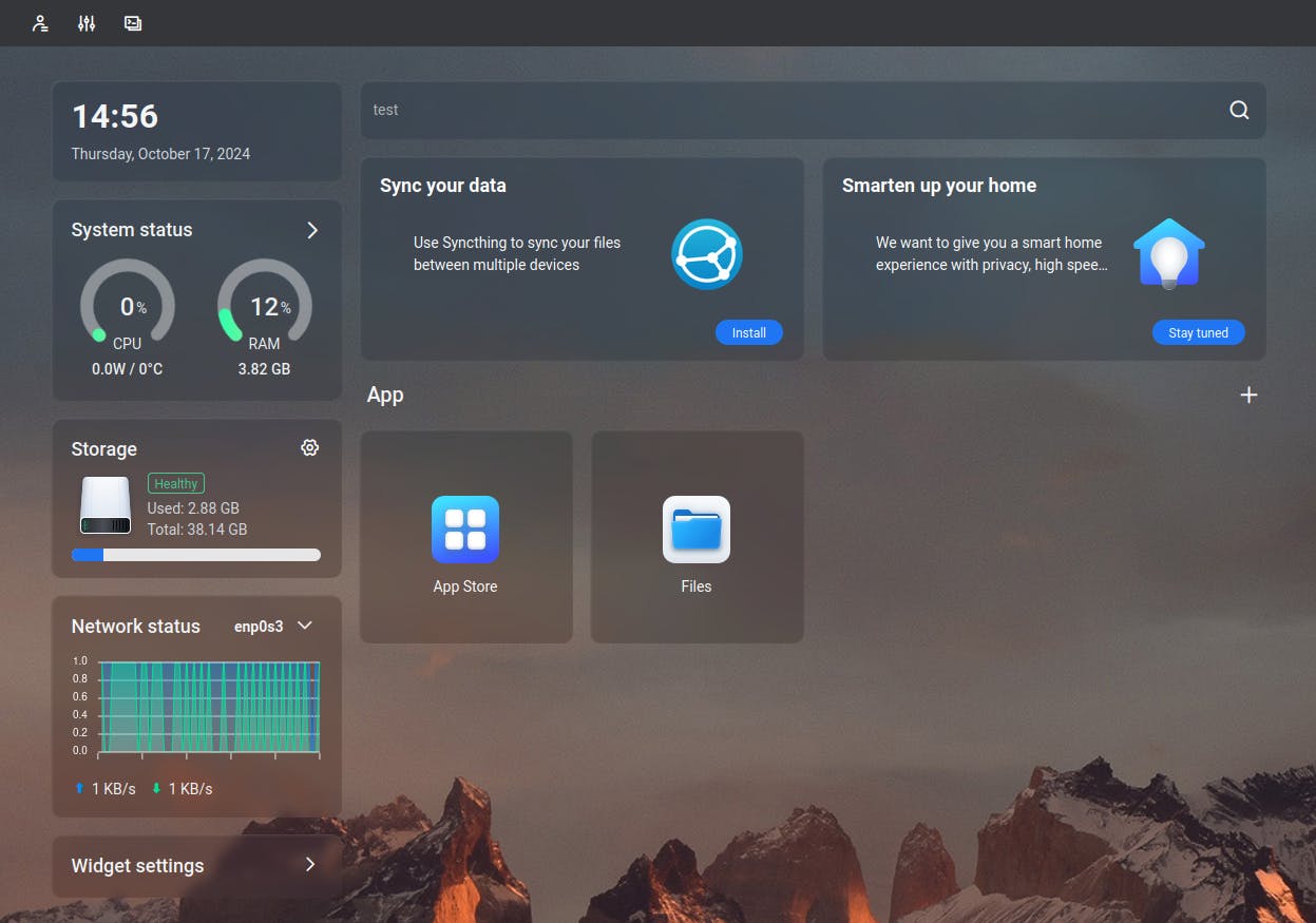 Via het dashboard van CasaOS heb je toegang tot allerlei apps en widgets.