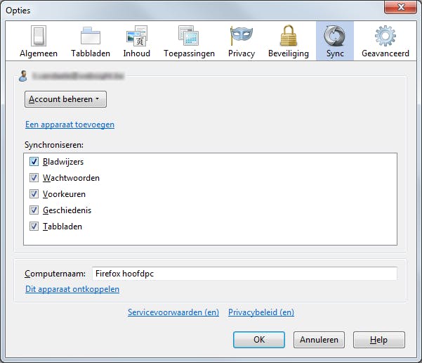 Hoe koppelt u een tweede (derde, ...) toestel aan dit account? Open hiervoor nogmaals de rubriek Sync op uw eerste pc en kies Een apparaat toevoegen. Vul de code in die u afleest op uw andere apparaat (hier opent u Sync en kiest u Verbinden: zie ook Firefox Help).
