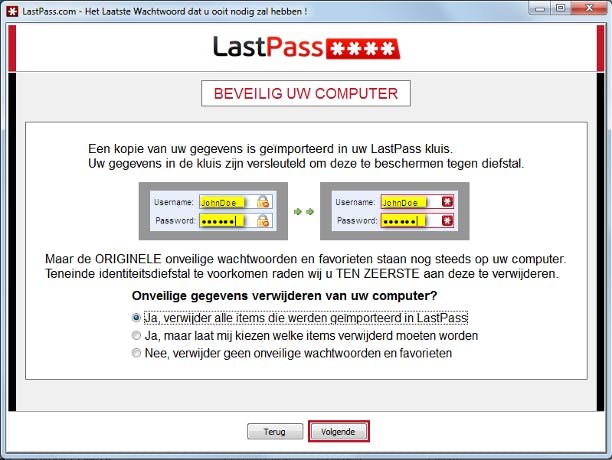 LastPass kan uw bestaande wachtwoorden importeren en de oude, 'onveilige' locaties wissen.