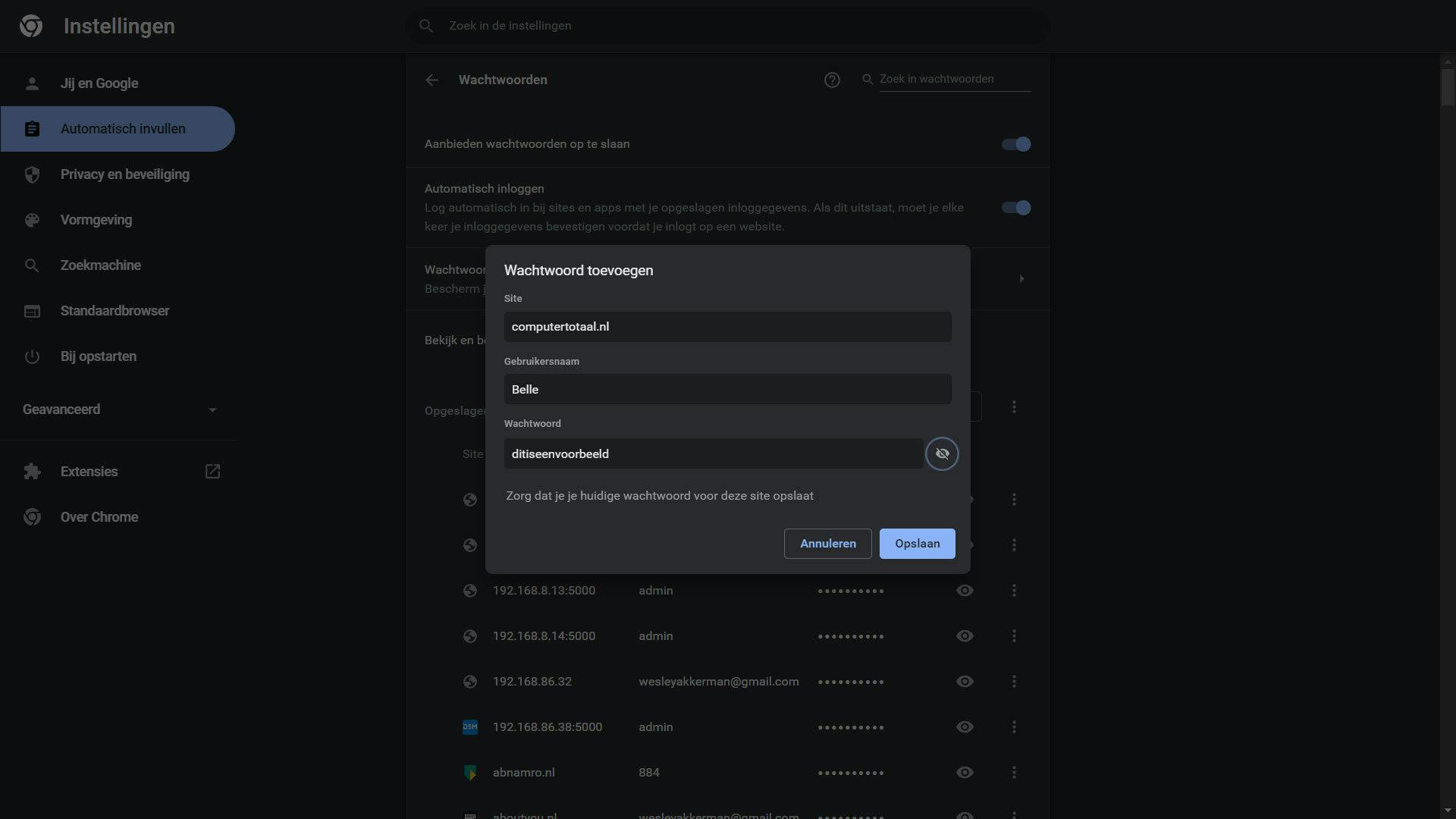 Wachtwoorden toevoegen aan Chrome-wachtwoordmanager