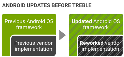 Om serieuzer werk te maken van het veilig en up-to-date houden van Android, hebben de ontwikkelaars van Android in 2017 Android Oreo voorzien van ‘Project Treble’. Hiermee wordt Android in feite in tweeën gedeeld, de basis en het deel dat door de fabrikanten wordt aangepast. De basis wordt door Android-ontwikkelaars onderhouden, en de andere helft, min of meer de Android-skin, door de fabrikanten zelf. Zo kan Google zelf de verantwoordelijkheid nemen wanneer kwetsbaarheden worden ontdekt of nieuwe functies en versies voor Android beschikbaar komen. Ook moeten hierdoor updates sneller beschikbaar komen en worden uitgerold. Dat zou in theorie Android een stuk weerbaarder moeten maken en de fragmentatie tussen alle veelgebruikte Androidversies moeten verkleinen.