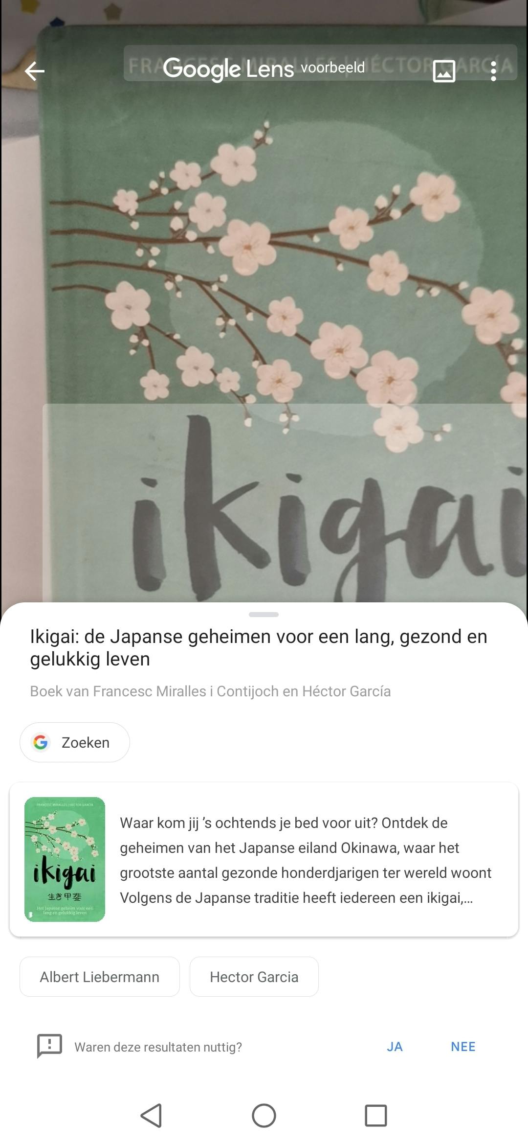 In het verlengde daarvan kun je boeken en media ontdekken. Scan je bijvoorbeeld een boek, dan krijg je de Google Books-informatie te zien (in het Nederlands, indien beschikbaar) en weet je meteen hoeveel pagina’s het boek heeft, door wie het is geschreven, wanneer het werd gepubliceerd en welk genre het betreft. Er kan zelfs een boekvoorbeeld bij worden gezet, waardoor je er alvast een paar pagina’s van kunt lezen, mocht je niet zoveel tijd hebben om dat in de boekwinkel te doen.