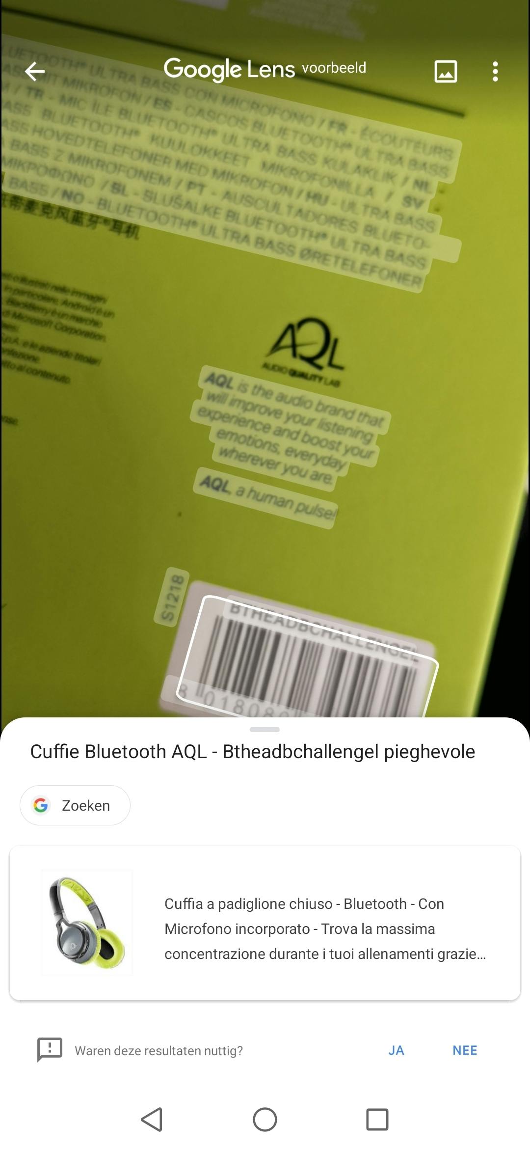 Een smartphonecamera wordt ook vaak gebruikt om QR-codes te scannen. Denk aan QR-codes voor internetbankieren enzovoort. Google Lens kan ook QR-codes lezen en voegt daar bovendien nog streepjescodes aan toe. Zo heb je nog een manier om snel te ontdekken hoe het artikel heet dat je in je hand hebt.