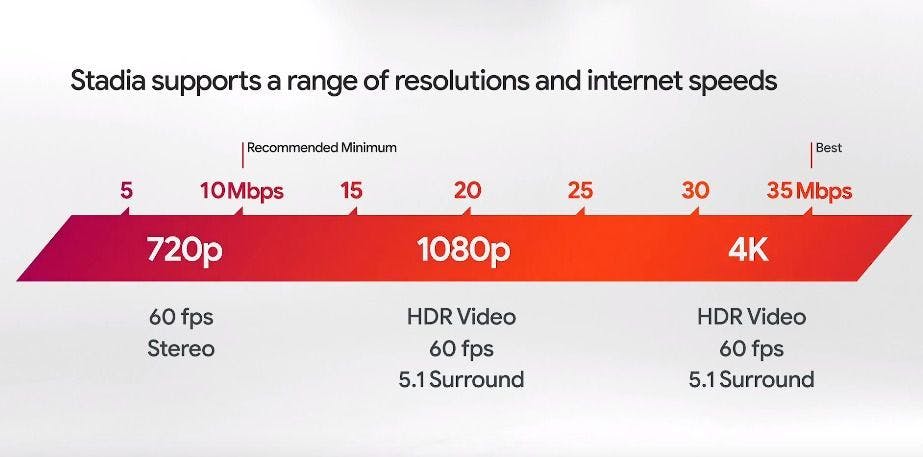 De specificaties van Google Stadia zijn daarnaast veelbelovend. Met een internetsnelheid van 25 Mbit kunnen spelers volgens Google games streamen in 1080p en 60fps en voor 4K heb je minstens een 30 Mbit/s-verbinding nodig. In de toekomst zou streamen in 8K en 120fps zelfs mogelijk zijn, maar er wordt ook rekening gehouden met suboptimale scenario’s. Ontwikkelaars kunnen dit soort verbindingen testen om Stadia daadwerkelijk voor zoveel mogelijk mensen beschikbaar te maken; wel zo fijn als je je op dit moment in Midden-Amerika bevindt.