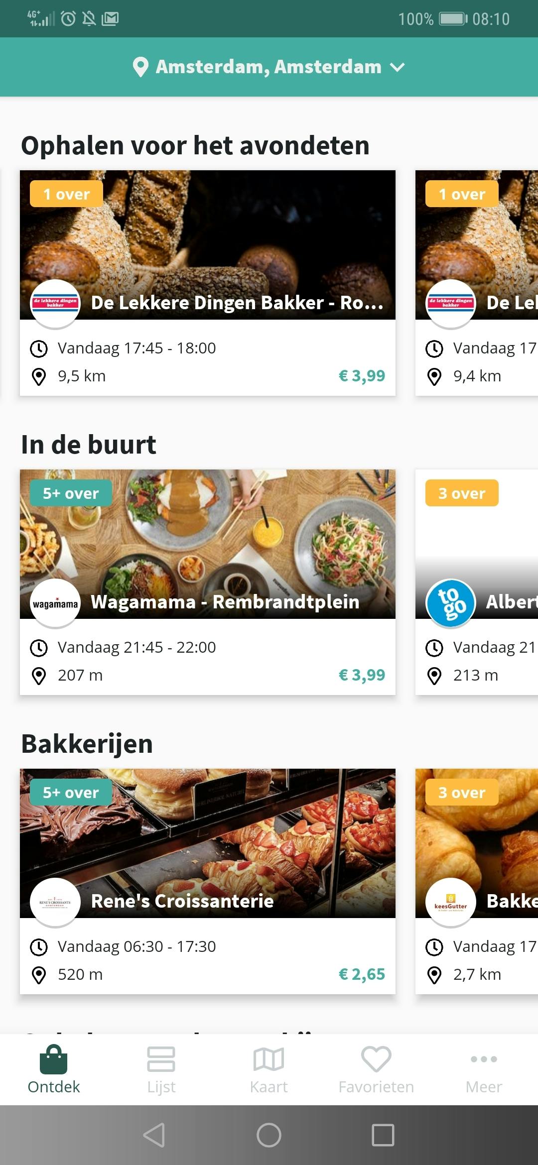 Kijk je in de Too Good To Go-app (voor Android en iOS), dan zie je wat er in jouw buurt zoal wordt aangeboden aan Magic Boxes en voor welk tijdstip. Het heeft immers geen zin om de restjes van een ontbijtbuffet pas rond etenstijd ‘s avonds aan te bieden, net als dat het zonde zou zijn voor een supermarkt om niet nog even een dag lang te proberen via de normale weg van de bijna over datum zijnde artikelen af te komen.